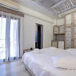 Några av de 23 luftkonditionerade rummen på hotellet Ifestos Villa, som vetter mot havet, har matplats och uteplats. Det finns vattenkokare och minikylskåp i rummen.